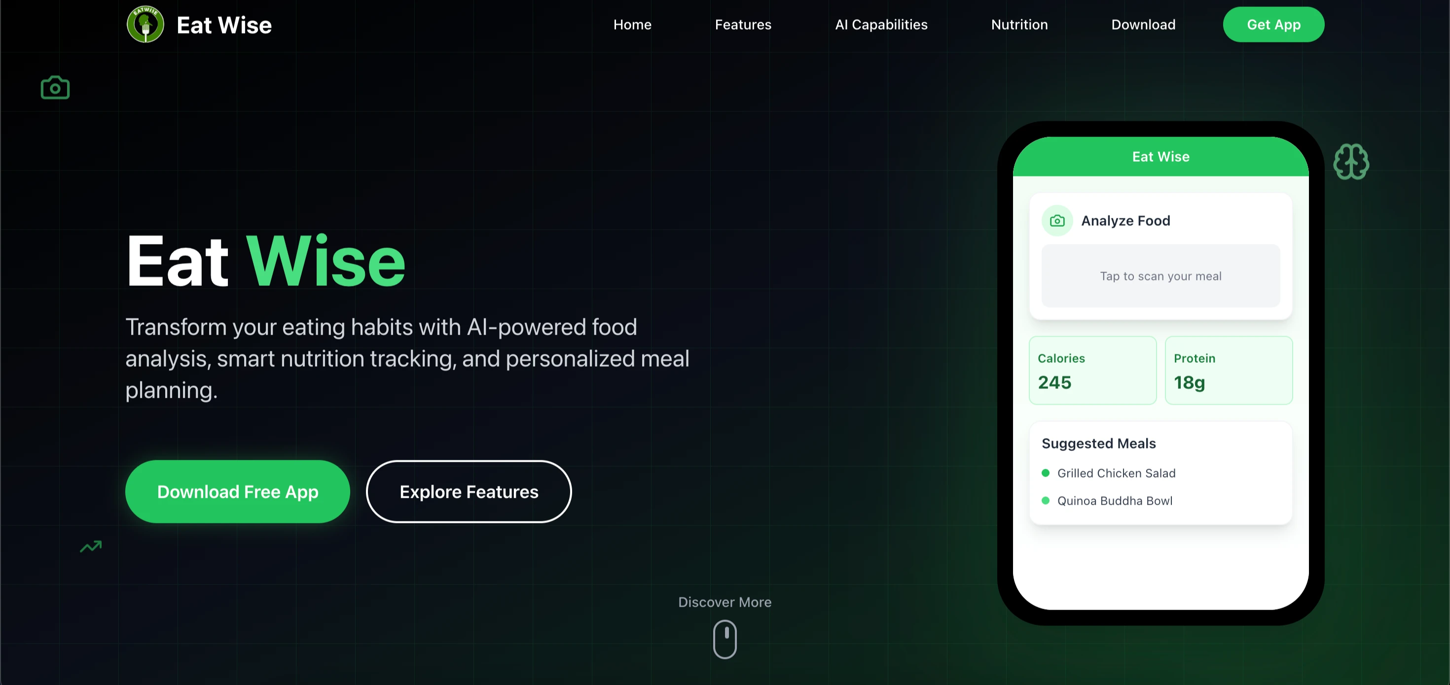 iOS app and marketing website with AI meal planning features, fast performance, and health-focused UX.