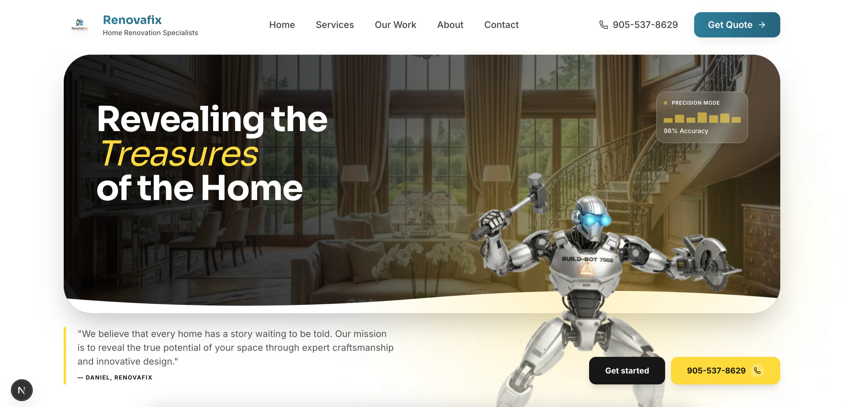 Renovation site with custom CMS for project galleries and reviews, cinematic design that tripled inbound leads.
