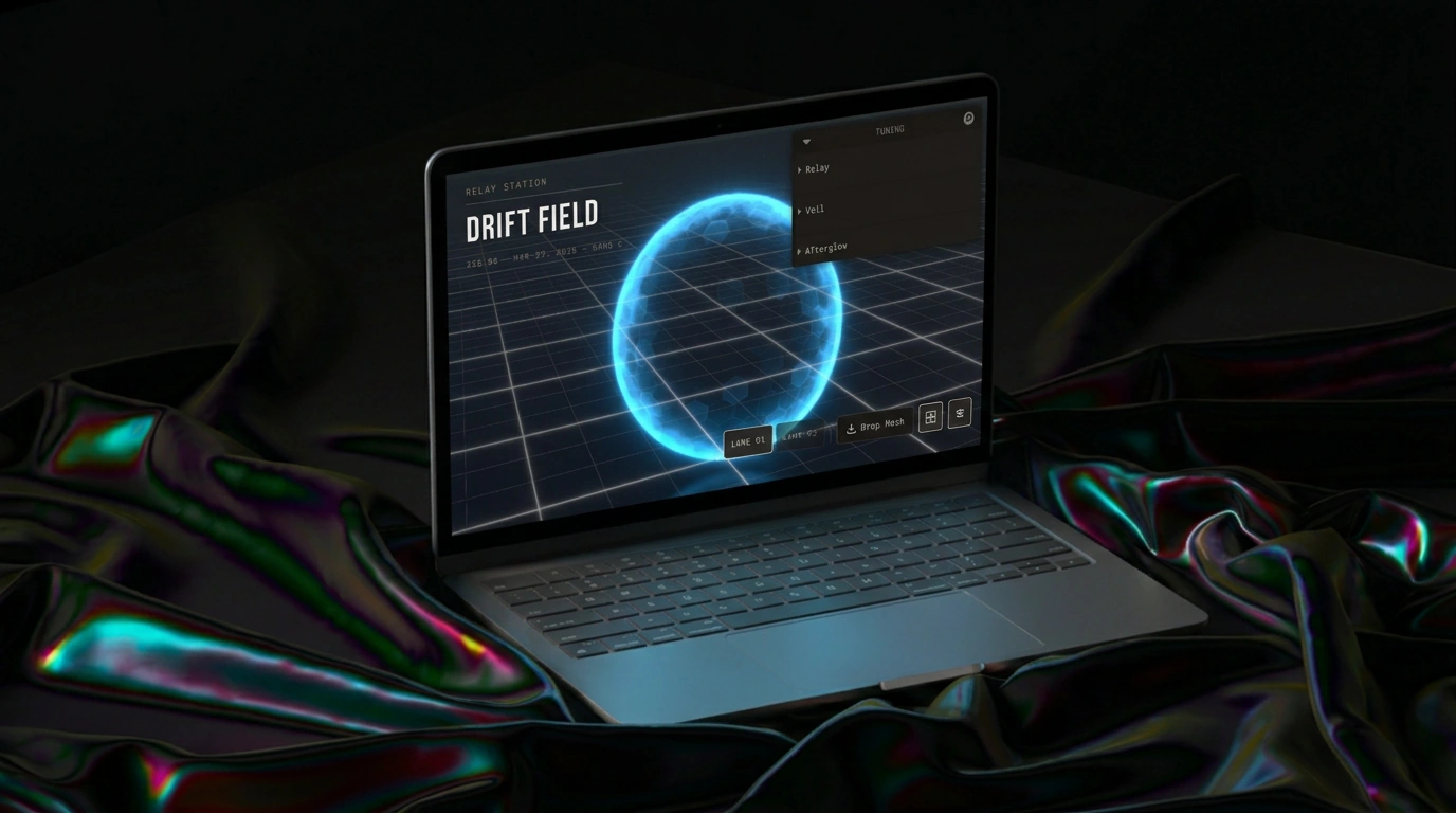 A real-time WebGL interactive playground where users orbit a parametric scene, tune a layered veil, and swap visual lanes — a front-end capability demonstration built in Next.js.