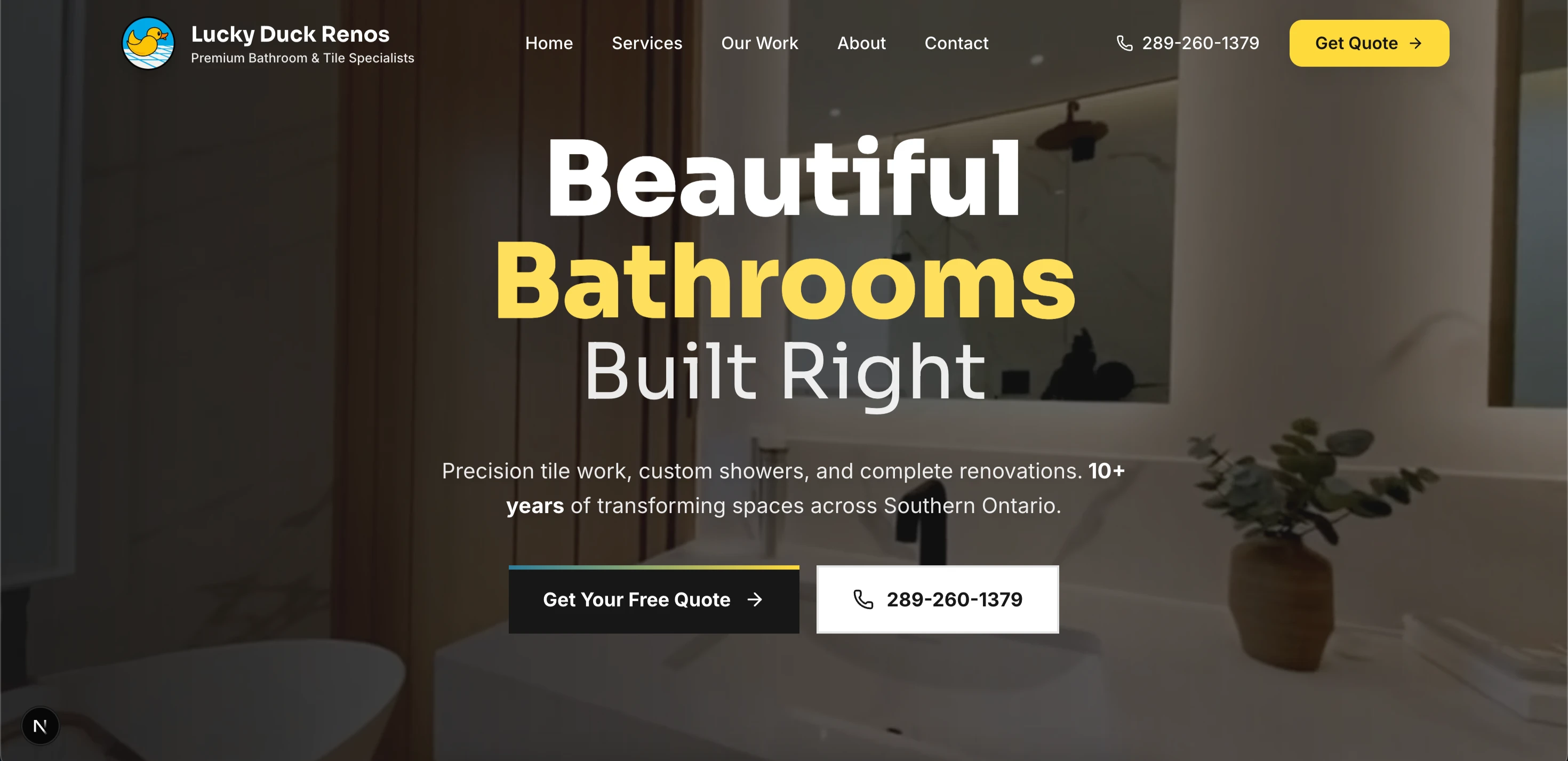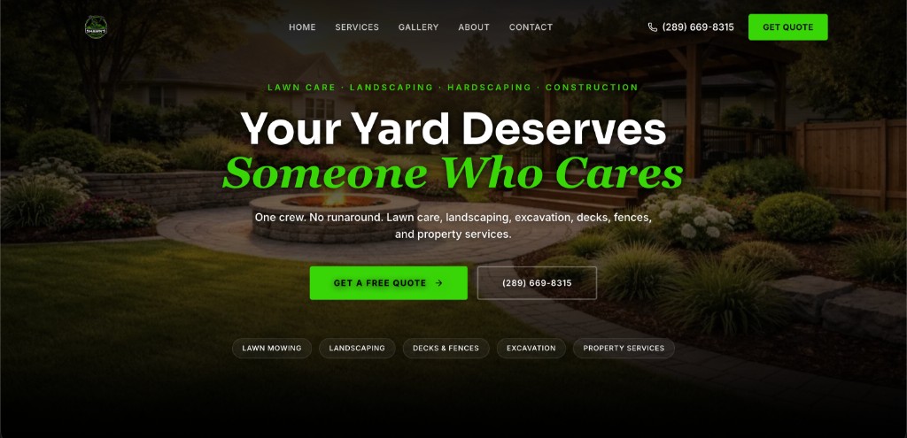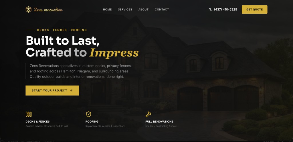 Complete renovation website with custom design, service showcases for decks, fences, and roofing across Hamilton and Niagara.