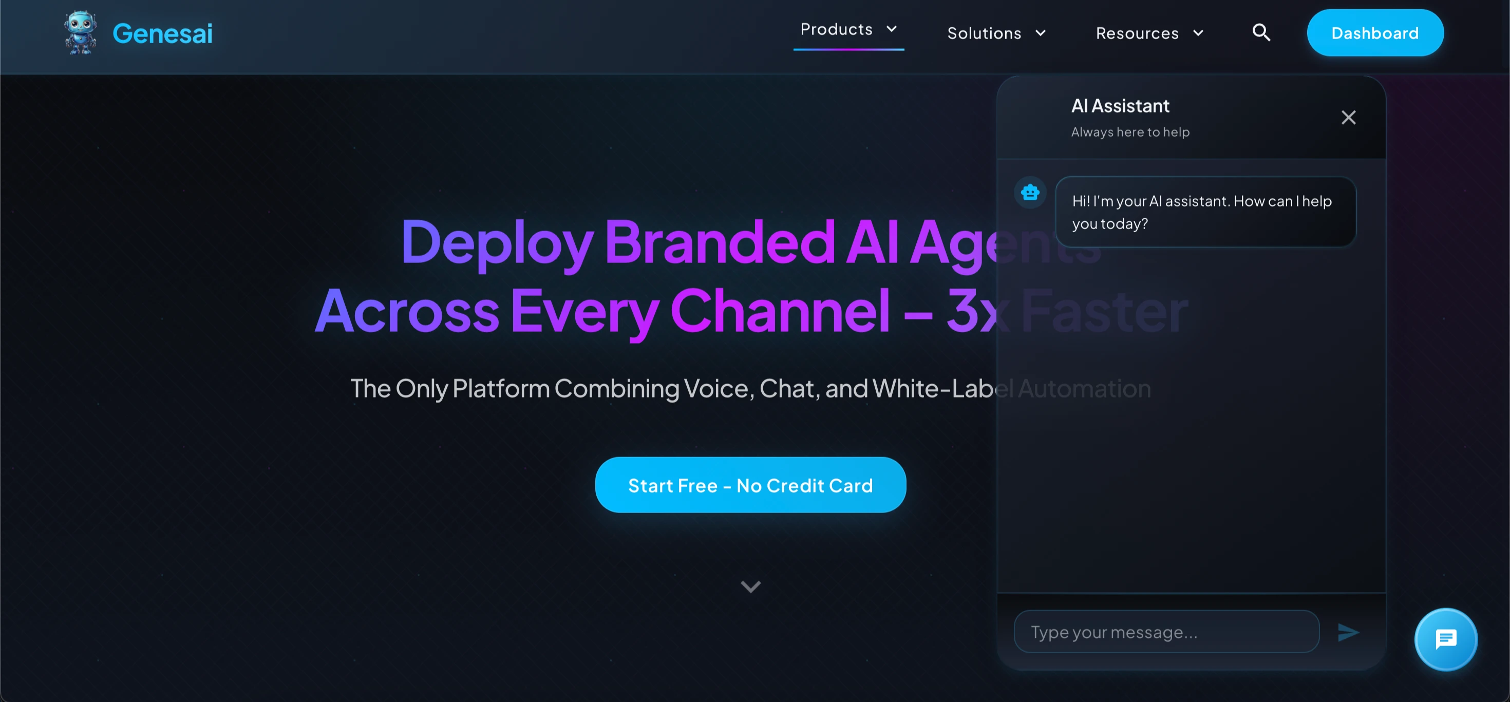 Marketing site with embedded AI chatbot demo, converting beautifully across all devices.